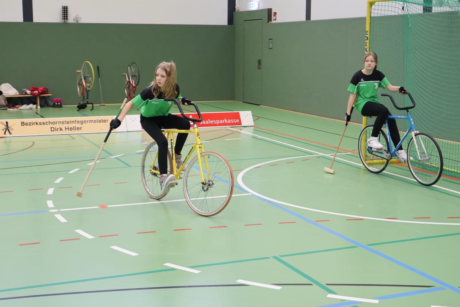 Radpolo, eine Mischung aus Polo und Hockey, ist eine rasante Ballspielart ausschließlich für Mädchen und Frauen. Je zwei Spielerinnen bilden eine Mannschaft. Die Spieler dürfen das Rad nicht verlassen. Es dürfen beide Spieler als Torwart fungieren, solange Sie sich im 2m-Kreis des eigenen Tores befinden. Die Abwehr des Balles mit den Händen ist hier erlaubt. Schülerinnen spielen 2x5, Erwachsene 2x7 Minuten. Es gibt Freundschafts-, Pokal- und Meisterschaftsturniere. Gespielt wird in unterschiedlichen Klassen bis hin zur 1. und 2. Bundesliga.